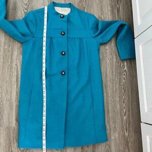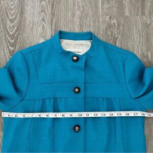 A charming, vintage-inspired blue Banana Republic jacket with a tailored fit, and a gentle A-line fit—equal parts sweet and stylish. Perfectly feminine with a playful retro flair.