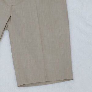 BANANA REPUBLIC Beige, regular waist, zipper fly, 2 front and 2 back pockets, all lined, bermudas, size 10/12 ( Size was not on the bermudas but I compared the measurements with the Banana Republic size guide). Great pre-loved condition, no major flaws but just a tiny stain at the back as shown on the picture. Nice light fabric with almost no stretch to it. Perfect business casual bermudas for the summer.