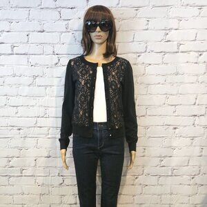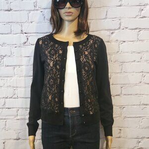 BANANA REPUBLIC black knit wool blend cardigan with front lace detailing