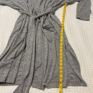 BANANA REPUBLIC Factory Luxespun tie waist long cardigan, duster, robe kimono style, with self tying belt and two front patch pockets, luxe soft heathered grey, size large