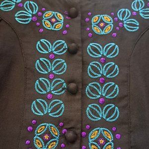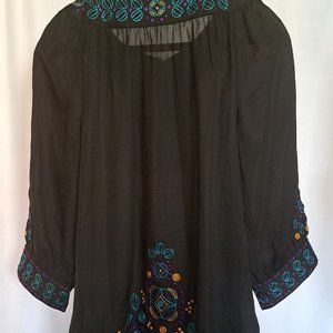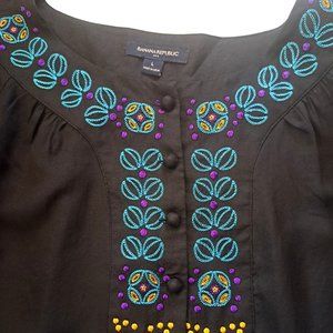 BANANA REPUBLIC womens BLOUSE Sz Large FLOWY EMBROIDERY BOHO lagenlook INDIA