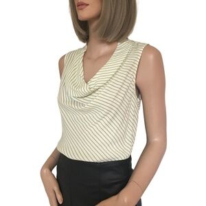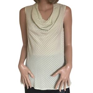 BANANA Republic Blouse 100% Rayon Cowl Neck Lime Green Stripe Top Tank Bias Cut