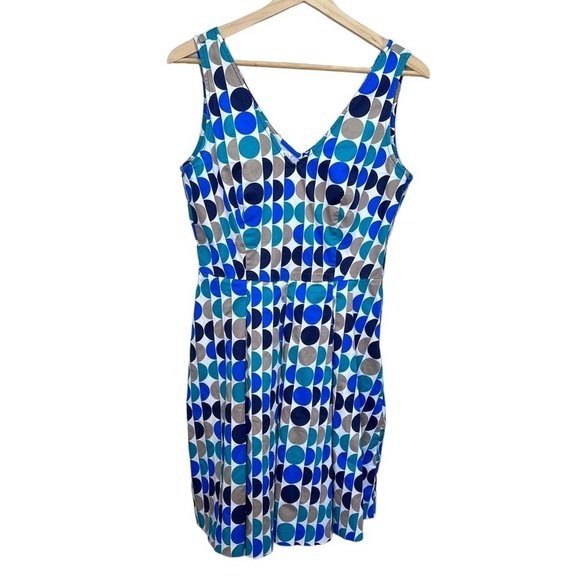 BANANA Republic Green Blue Polka Dot Pleated Sleeveless Dress Fit & Flare Size 4