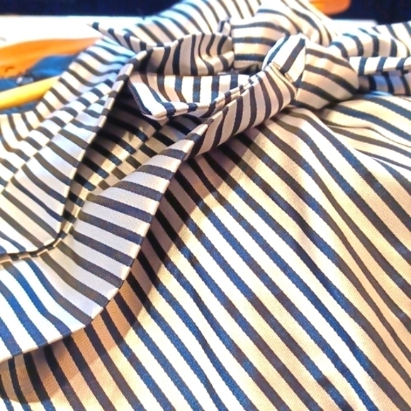 Banana Republic Silver & Navy Striped Metallic Dress with bowtie detail Sz 6