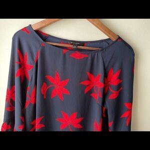 BANANA Republic boat neck bell sleeve floral navy and red blouse small