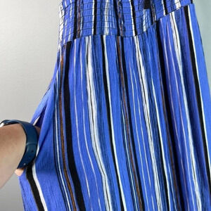 BAND OF GYPSIES Maxi Dress Blue Stripe Plisse Tied Deep V Smock Bohemian M