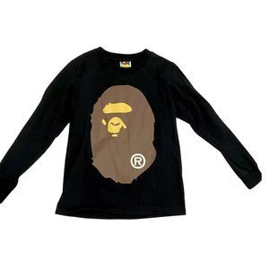 BAPE Big Ape Head Long Sleeve Tee in Black, Size S. Made from pure cotton and ribbed at the neck and cuffs.