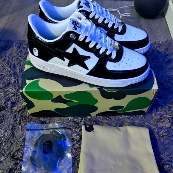 Brand new bapesta’s. Price on these are going to raise due to bape not being aloud to produce or sell these due to a nike cease and desist court case.