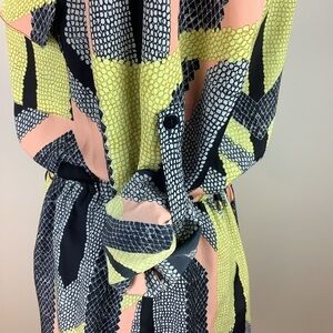BAR III COLOURFUL PRINT BUTTON SHIRT DRESS