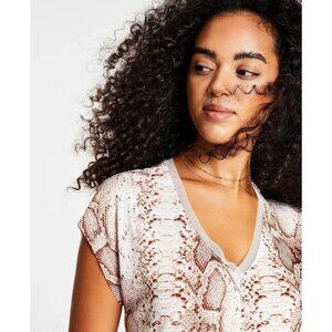 BAR III Women's Snake-Print Mesh-Trim V-Neck Top Size XS