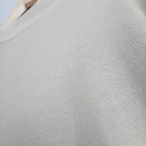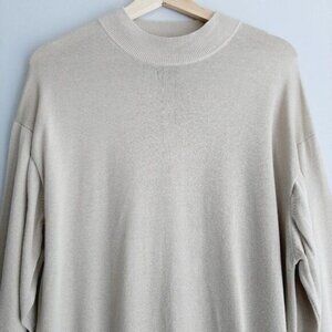 • Long sleeve retro fine knit sweater in creamy white silk cotton blend.