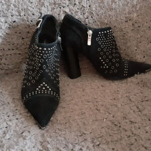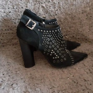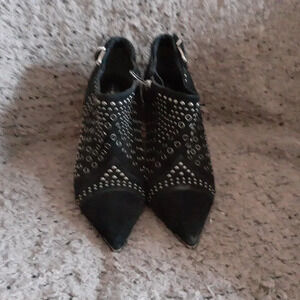 BARBARA BUI-Paris-Studded/Grommets Black Suede Ankle Boots-Zip-Sz 38-Excellent