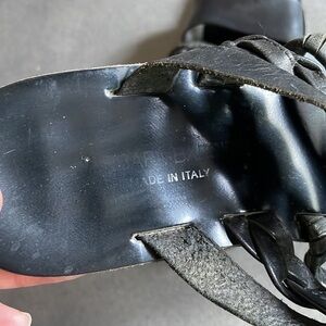 In good second hand condition gently worn. In leather made in Italy. Brand is faded but it's still readable in the light. Cool different straps on top. Great quality. Length: 10''. Fit like a 7-7,5.