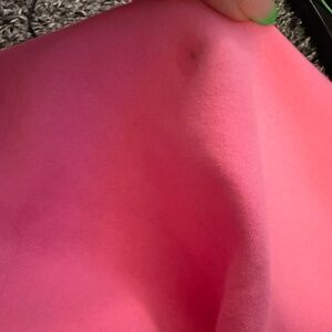 Bright color, pretty close to neon. Has a mark on the INSIDE of the hoodie (third picture) but it should wash out.
