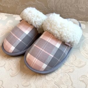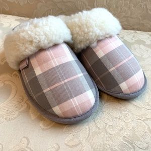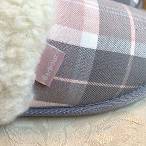 This mule-style slipper is trimmed in Barbour's signature tartan and finished with a thick-pile faux-fur lining for luxurious warmth and comfort.