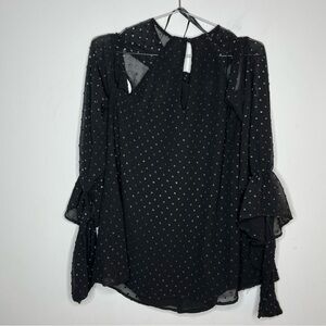 BARDOT Polka Dot Long Sheer Statement Sleeve Blouse Cold Shoulder