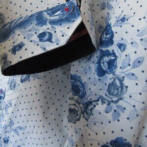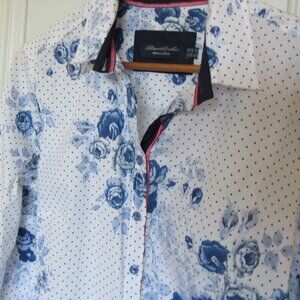 BARILOCHE Spain Navy White Floral Button Up Blouse Size ES 48 / FR 46