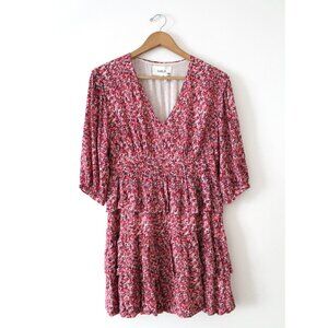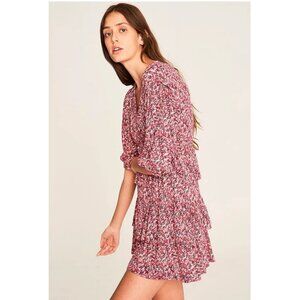 BA&SH Nina Tiered Printed Crepe Mini Dress / Small / Fuschia