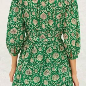The BA&SH Paz print short dress is green size xs. It is a v-neck, 3/4 sleeves and floaty fabric.