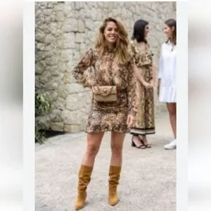 As seen worn by celebrities & Cannes Film festival, this rare printed Crepe ruffle Dress is one to turn heads, can be worn with boots, sandals 👡 or flats for a casual vibe. L = 3 Ba&sh size