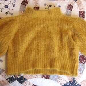 Rare BA&SH gold yellow super fuzzy alpaca/ mohair sweater with ribbed knit, exaggerated puff sleeves and slightly cropped shape.
