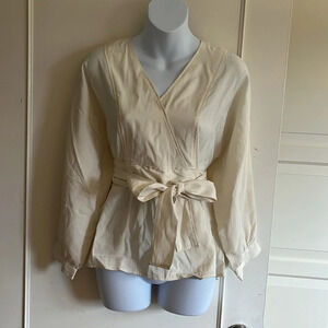 BA&SH Cola wrap-effect crepe de chine top. Cream size 2 Romantic effortless chic