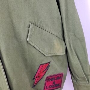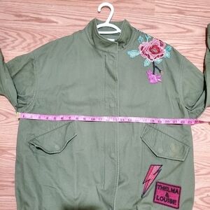 BASIC house women floral embroidred patch khaki green jacket size XS