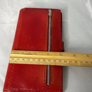 BAUXO Red Leather Foldover Snap Closure Wallet Zip Coin Pocket Card Slots