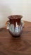 Bay Keramik small trophy style vase. Bay Keramik was a West German manufacturer of art ceramics that operated from 1933 to 1997 and produced art ceramics until the early ‘90’s. The primary colours on the vase are brown and light blue with orange on the handles, and it has a drip glaze. Bay Keramik sticker on the vase.