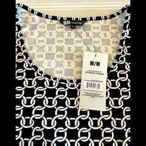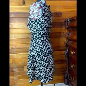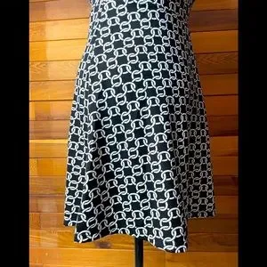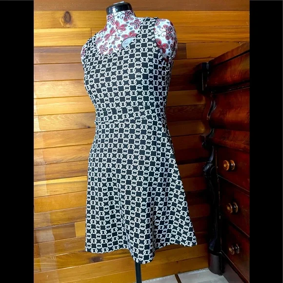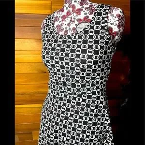 Bb Collection Sleeveless Dress, white chain link pattern on black background. size Medium.