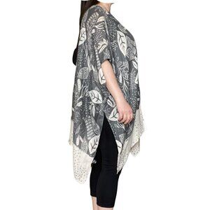 BB Collection Kimono Bathing Suit Cover Up Leaves Gray White Womens One Size O/S