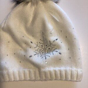 BB Collection White Snowflake Beaded Beanie Knit Hat Winter Skiing Warm Toque