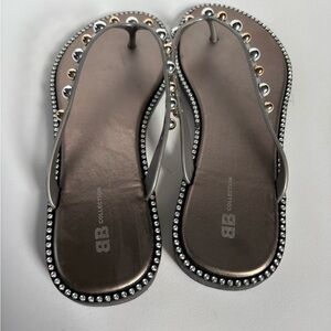 BB Collection metallic studded thong sandals flip flop size 6 euro 37