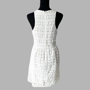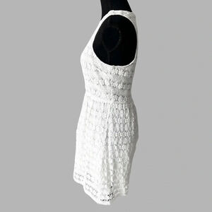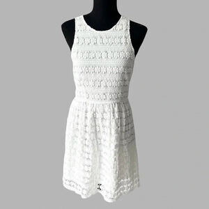 The BB Dakota Andree White Lace Dress is a lacy dream that you won't want to wake from! A high rounded neck and sleeveless bodice boast beautifully crocheted lace running horizontally throughout the fitted bodice. Blooming below is a charming flared skirt.