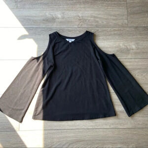 Drapey french terry bell sleeve top with cold shoulder cutouts.