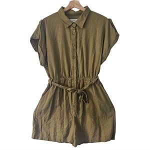 BB Dakota Olive Green Linen-Blend Short Sleeve Romper Size XL