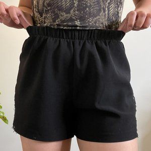 BB Dakota high wasted shorts with lace insets. Super comfy and flattering, can be worn for a night out or at home with a cozy sweater. Elastic waistband, it says in place.