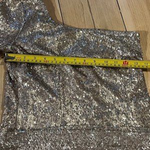 One shoulder fitted mini dress in champagne sequins