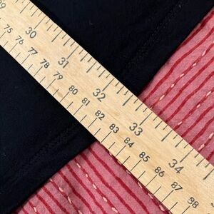 Good used condition, lovely soft fabric and dress has a nice stretch to it. No fabric information label but material feels like a cotton poly Lycra blend . Very versatile LBD dress could be dressed up or down and layered and worn likely all seasons