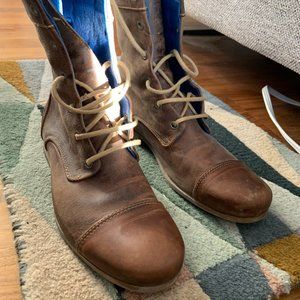 Barely worn, a few minor scuffs on the toe. These boots were kept with the original raw Atlas leather appearance. You can nourish the leather as is, or polish them if you prefer.