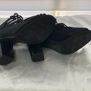BC Born in California Black Vegan Suede Shoes/Sandal - Size 7. Great condition. Heel height is 3.5 inches.