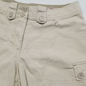 BC Clothing Original Women's Shorts Sz 6 Khaki color, front zipper and Button fly. Belt loops, front and side pockets in good condition
