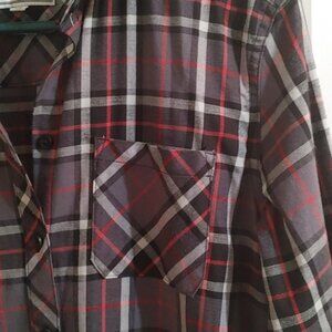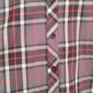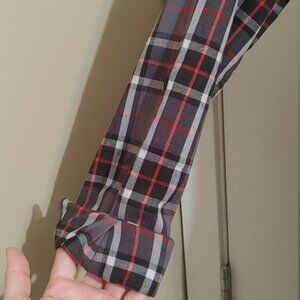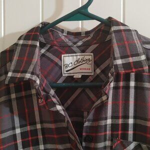BC Woman dress shirt long tunic Small black gray red plaid pattern long …