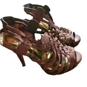BCB Girls Strappy Wedge Sandals 4" heels Bronze 8B/38