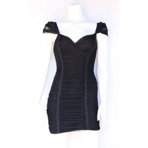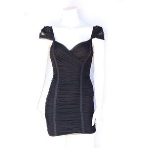 BCBCMAXAZRIA Women’s Size XXS Black Bodycon Mesh Cap Sleeve Ruched Mini