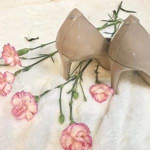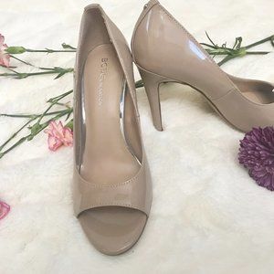 BCBGeneration Size 6B All man made materials Beige peep toe 3 inches high only used once looks brand new! very classy!
