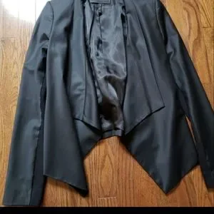 Hi! Do you have a full picture of the jacket on a mannequin or wearing it please? Do you have a picture of the back? What condition is it in? Is it satin? What material/ care please?