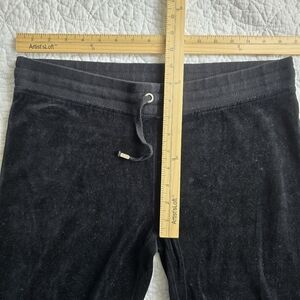 BCBG Black Velour Rhinestone Logo Track Pants