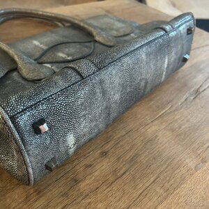 BCBG Black White Stingray Print Leather Handbag Shoulder Bag Designer Tote