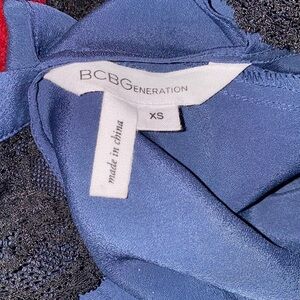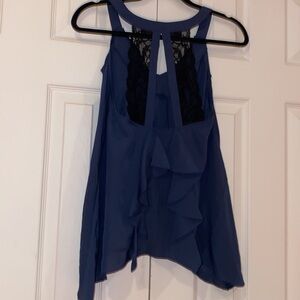 BCBG Blue & Black Ruffle Lace Sleeveless Blouse Size X Small